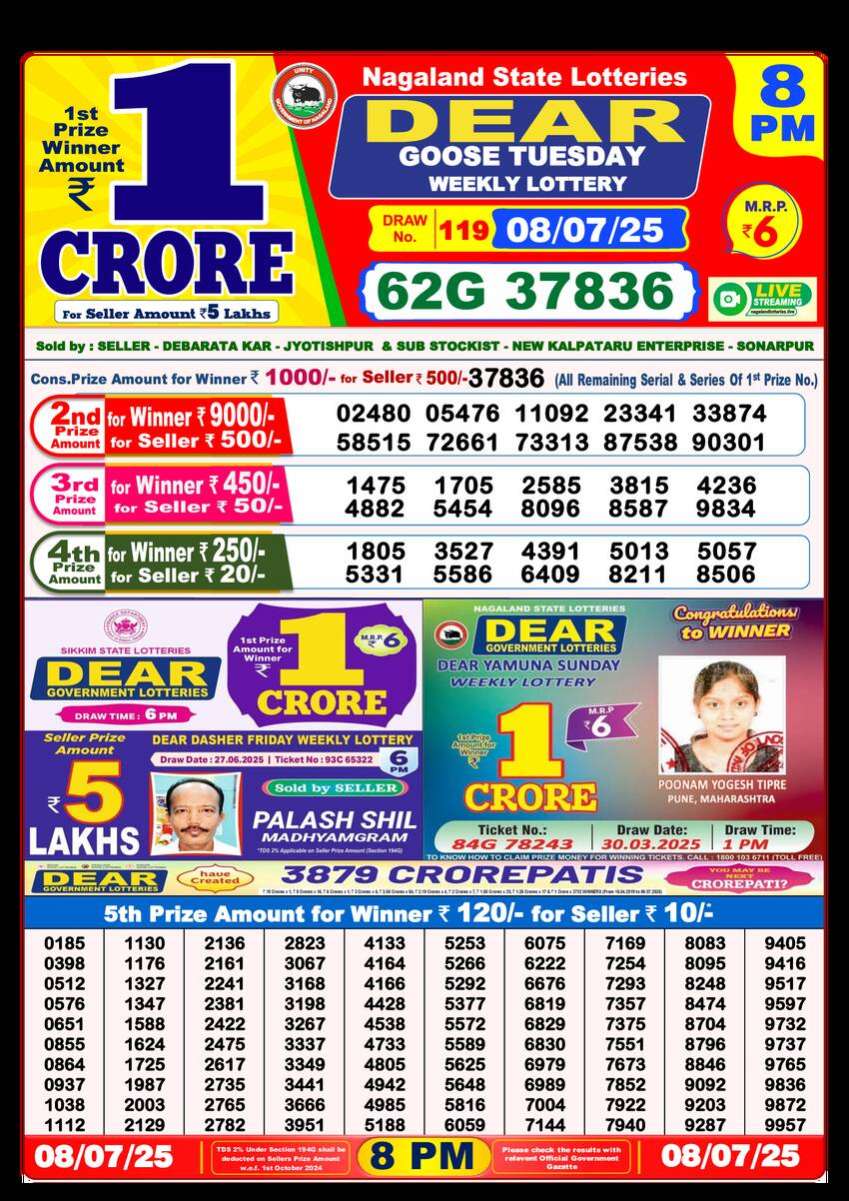 Nagaland State Lottery 8PM Result for 08 July 2025 is Here. Check the 8PM Dear Lottery Results Live Today. Download the Results Image or print the result PDF For Free. The 8PM Results are Officially Released by the Nagaland State Lottery Through Live Draw on the YouTube channel.
