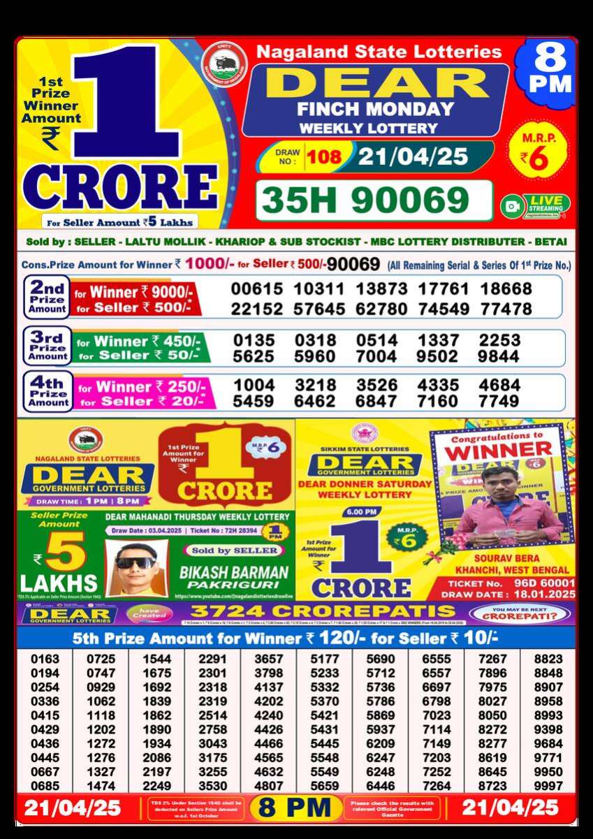 Nagaland State Lottery 8PM Result for 21 April 2025 is Here. Check the 8PM Dear Lottery Results Live Today. Download the Results Image or print the result PDF For Free. The 8PM Results are Officially Released by the Nagaland State Lottery Through Live Draw on the YouTube channel.